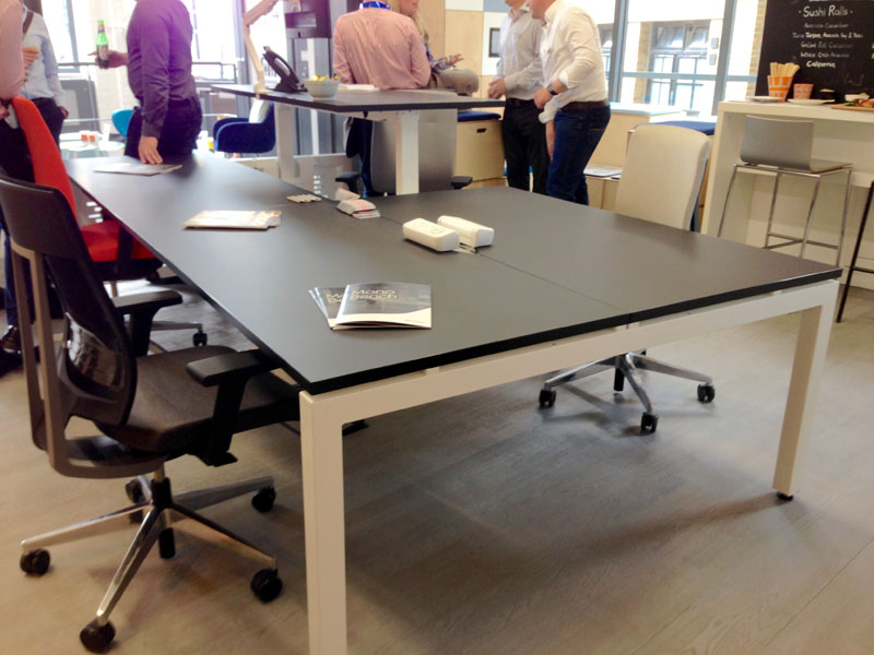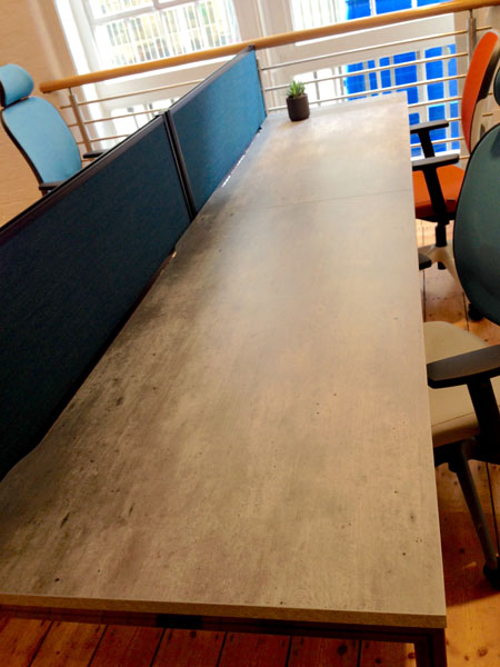 The other trend which we saw run through many office furniture manufacturers was the use of grey and concrete worktops. Some of the new additions are stunning and would create a sleek finish when used with contrasting white storage or colourful screens.